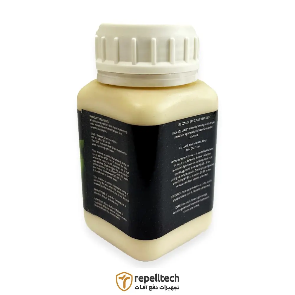 - نحوه استفاده : بعد از رقیق سازی با آب در محیط اسپری کنید. این کار تا سه هفته مار، مارمولک و عقرب ها را از محیط دور میکند.